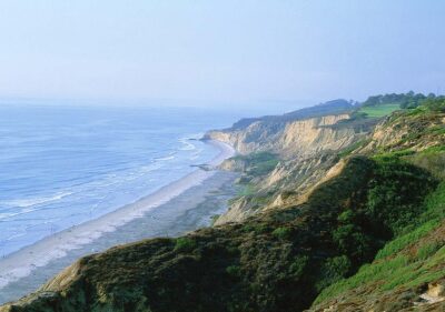 Perched north of La Jolla along historic Highway 101, Torrey Pines State Beach is a sunbathing and hang gliding hot spot with graceful flights launching from cliff-top perches. This San Diego beach is complemented by the nearby Torrey Pines State Natural Reserve, offering nature trails meandering through native pine trees.