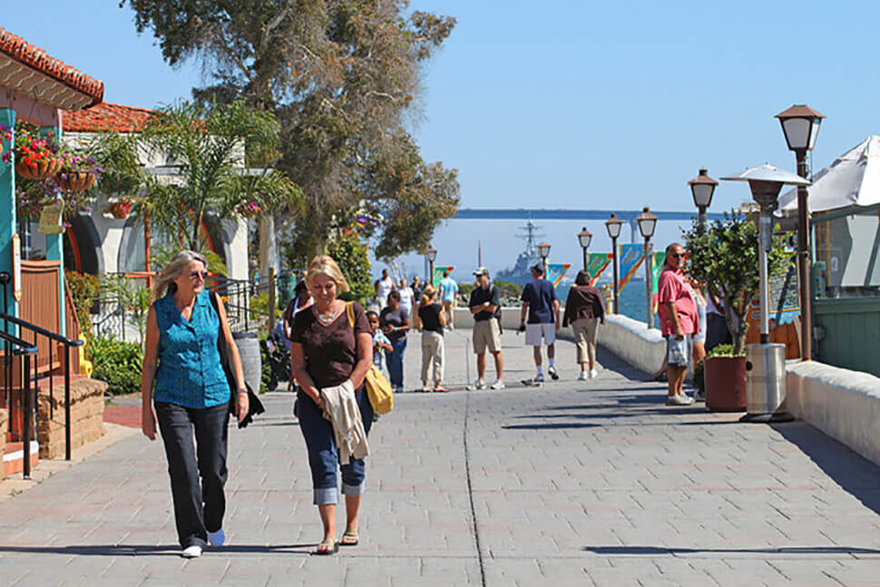 San Diego, known as America’s finest city, is a year-round waterfront destination. With many days of sunshine, this southern California haven attracts visitors from across the globe yearning for ocean air, sandy feet and access to vitamin D 365 days a year. Situated in the southwest corner of the United States, San Diego is filled with people living active lifestyles, spending time outside and enjoying the salty sea air. Whether it’s the Pacific Ocean or the bay front, locals and visitors flock to the water. Although the coastline sees its fair share of action, downtown San Diego’s Seaport Village is a hub for locals and travelers alike. Throughout the year, thousands stroll along the San Diego Bay taking in the sights. Be it a beautiful exercise route, trendy retail shop, caricature drawing, or tourist souvenir you’re looking for – Seaport Village has it all!